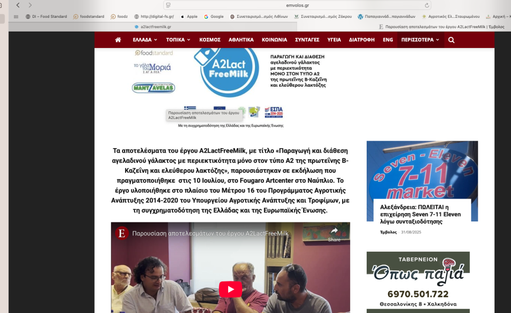 Το έργο A2LACTFREEMILK στο κανάλι του Emvolos NEWS!
